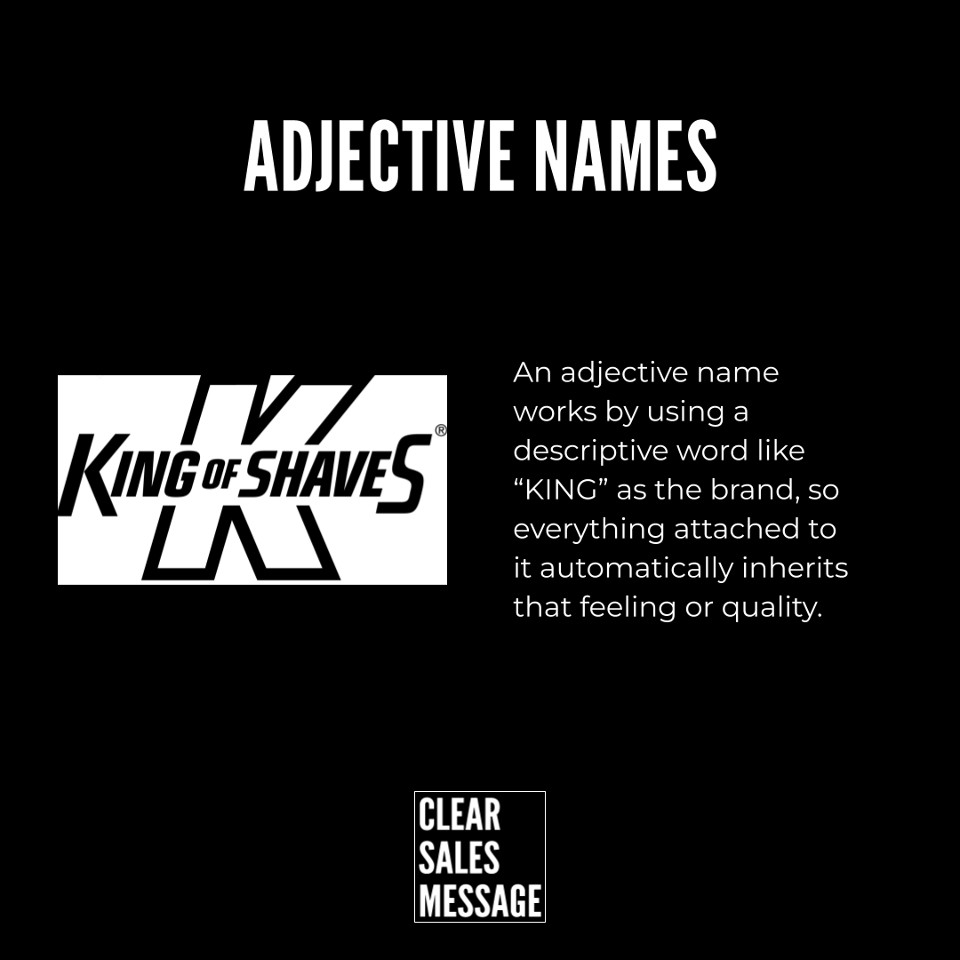 An adjective name is a brand or product name that leads with a descriptive word instead of a neutral label.