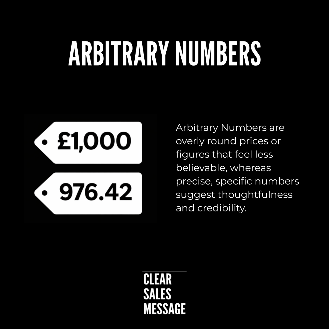 When a number appears arbitrary, attention shifts away from the benefit being described and toward questioning its accuracy. The buyer begins to wonder how the figure was reached, whether assumptions were made, or whether the claim has been simplified for persuasion.