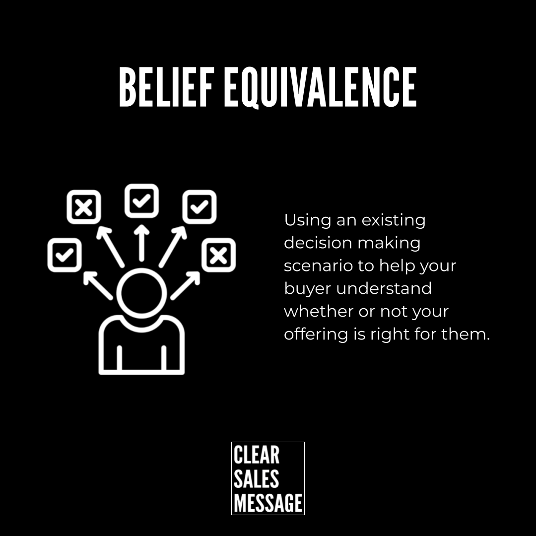 Belief Equivalence works by finding a core belief or behaviour that your buyer already agrees with – and then showing how your offer fits perfectly within that belief.