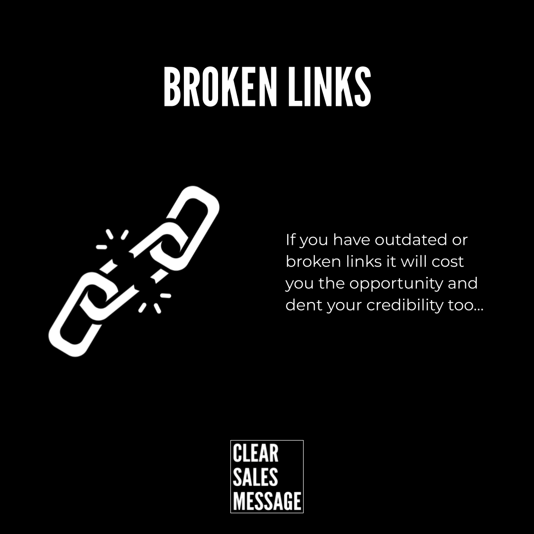 A broken link occurs when a buyer clicks expecting to reach information, book a meeting, view proof, or complete a purchase, and instead encounters an error, missing page, outdated destination, or incorrect redirect.