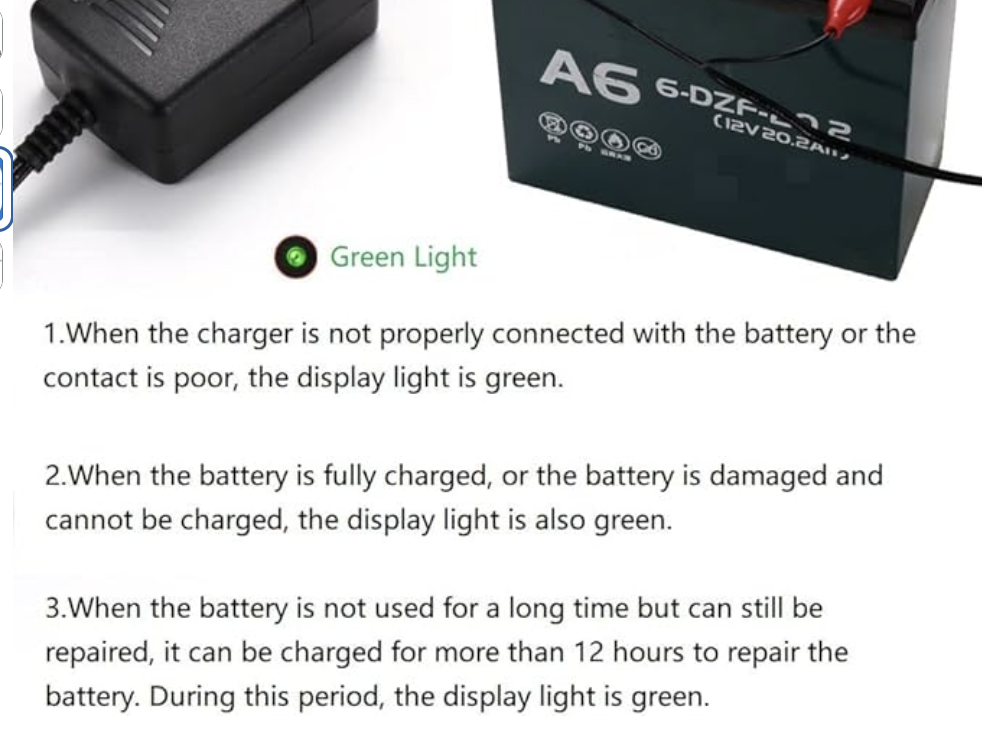This charger shows a GREEN light when there is a problem and a RED light when it’s working properly….(!)
