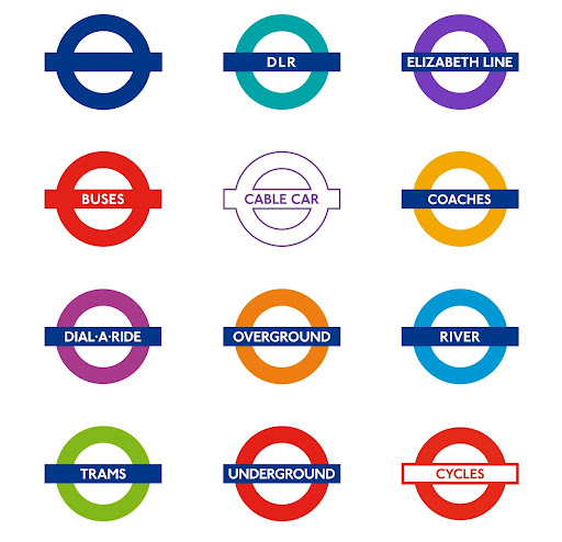 A great example of this is Transport for London (TfL). Their services—like the Underground, Overground, DLR, Trams, and Buses—each have their own logo variation. Although the colours and wording differ, the consistent roundel shape and typography unite them as a recognisable family.