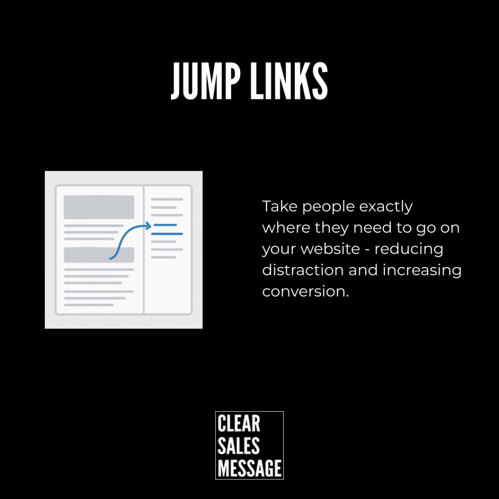 The Jump Links technique gives your audience the ability to skip directly to the part of your sales message that’s most relevant to them.