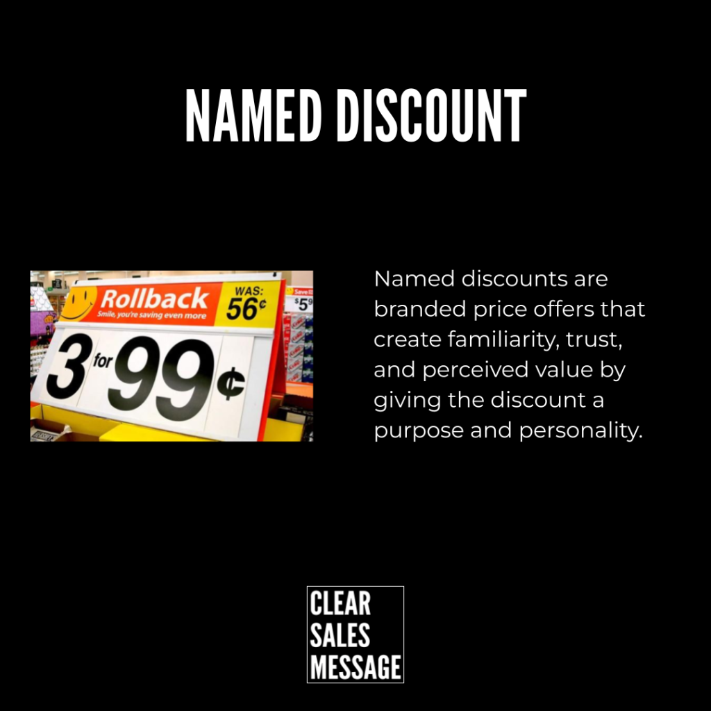 Named discounts work because they shift the customer’s perception of the offer. Rather than seeing a discount as a simple price cut, the customer sees a purpose, structure, or benefit behind the lower price.