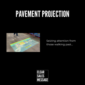 You might see a pavement projection showing a logo, a call to action, or even a moving image designed to stop people in their tracks.