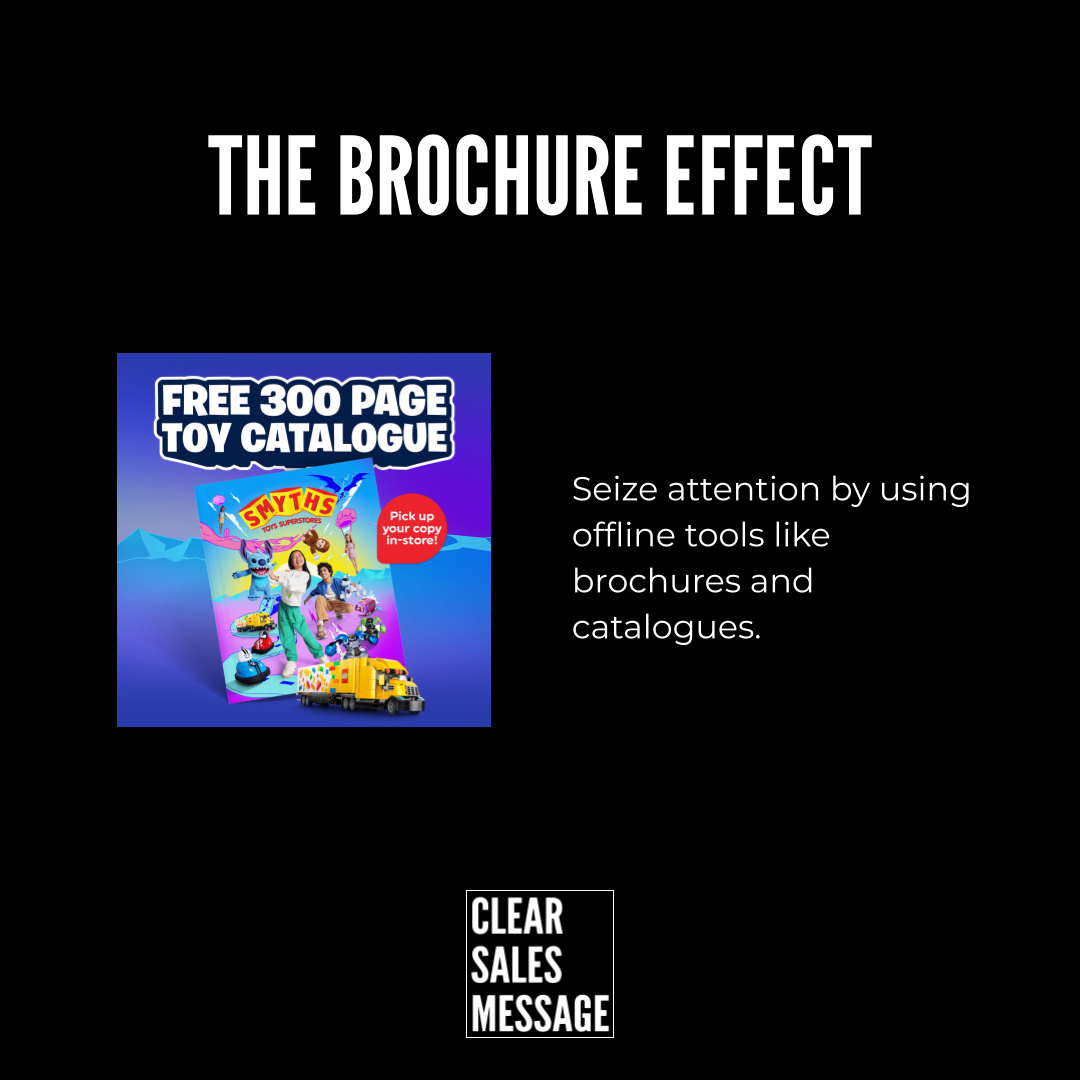 The Brochure Effect is the simple idea that offline materials like brochures, catalogues, handbooks, or printed guides can cut through noise in a way digital tools often cannot. A physical item feels more permanent and more valuable, so people give it more of their time and attention. When everyone else is relying on digital channels, something you can hold in your hands immediately feels different and more memorable.