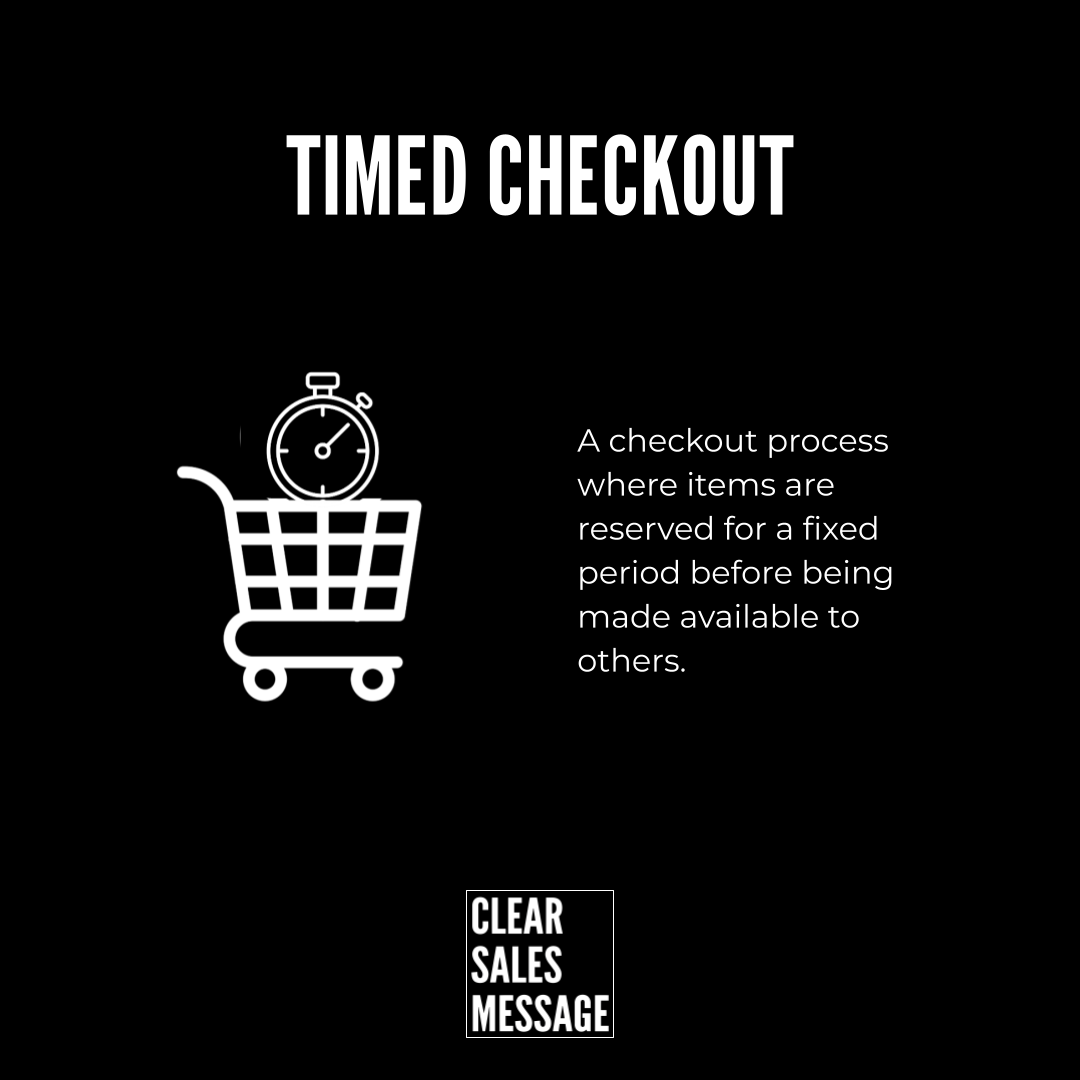 A timed checkout is a buying environment where items are reserved for a fixed period before being released back to availability. During that window, the buyer knows the product is temporarily held for them, but not indefinitely.